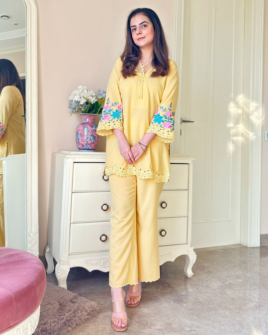 Sunlit Bloom Embroidered Cotton Co-ord Set