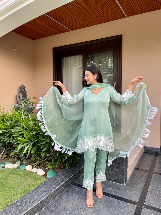 Aqua Elegance Hand-Embroidered Kaftan Set