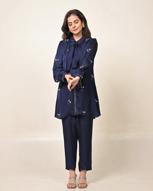 Denim Pearl Embroidered Co-ord Set