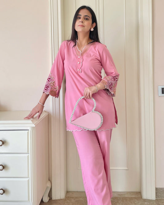 Pink Breezy Elegance Pure Cotton Co-ord Set