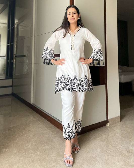 Monochrome Grace Embroidered Cotton Co-ord Set
