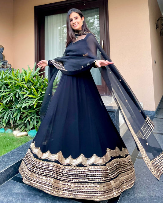 TARA- Black Georgette Lehenga with Hand Embroidery