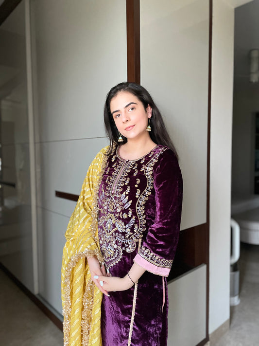 Black Velvet Co-ord with Hand Embroidery